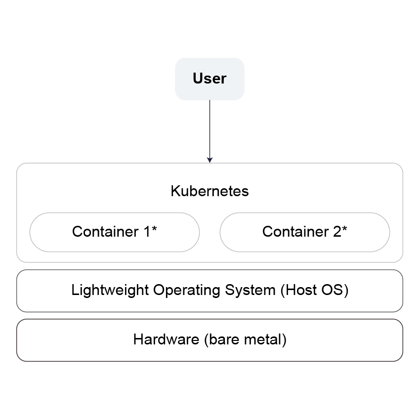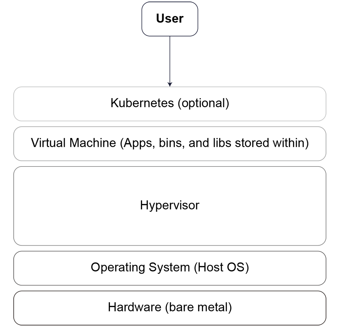 VMs host Kubernetes (K8s), which need to run through a hypervisor